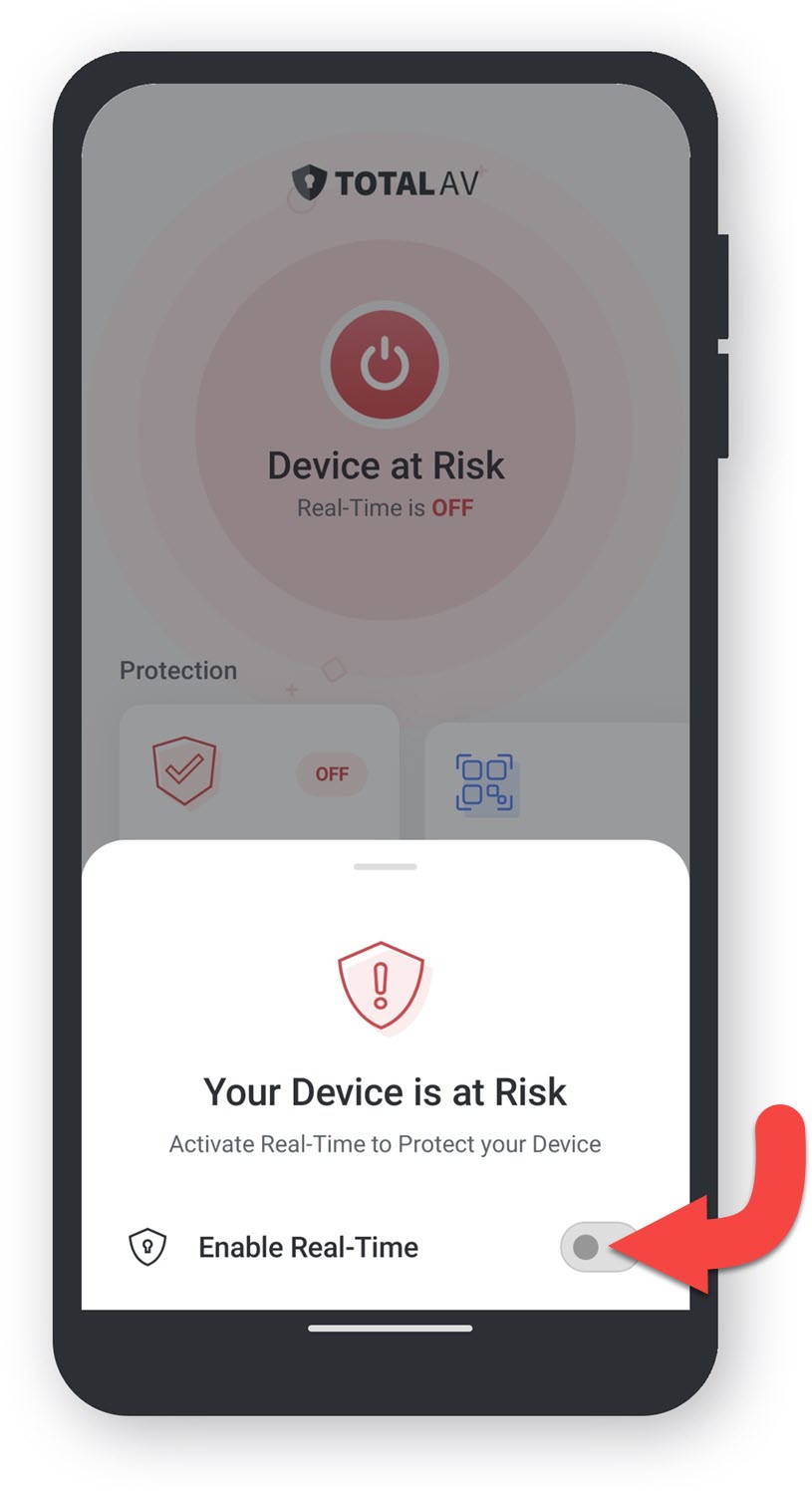 Aby aktywować ochronę w czasie rzeczywistym TotalAV, naciśnij przełącznik **, aby go włączyć.