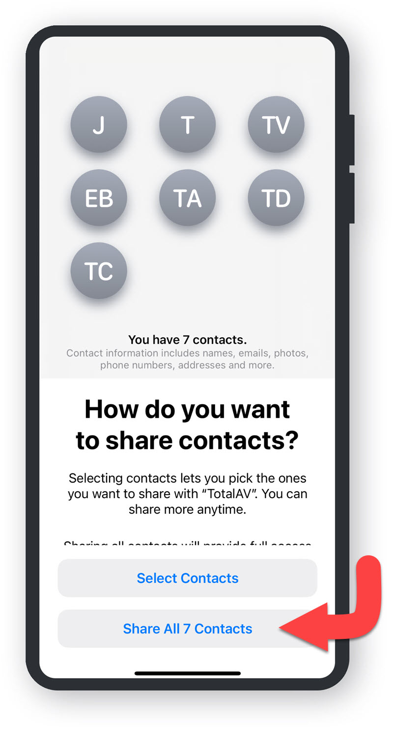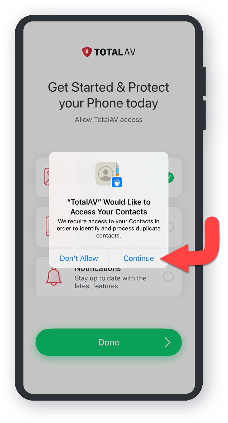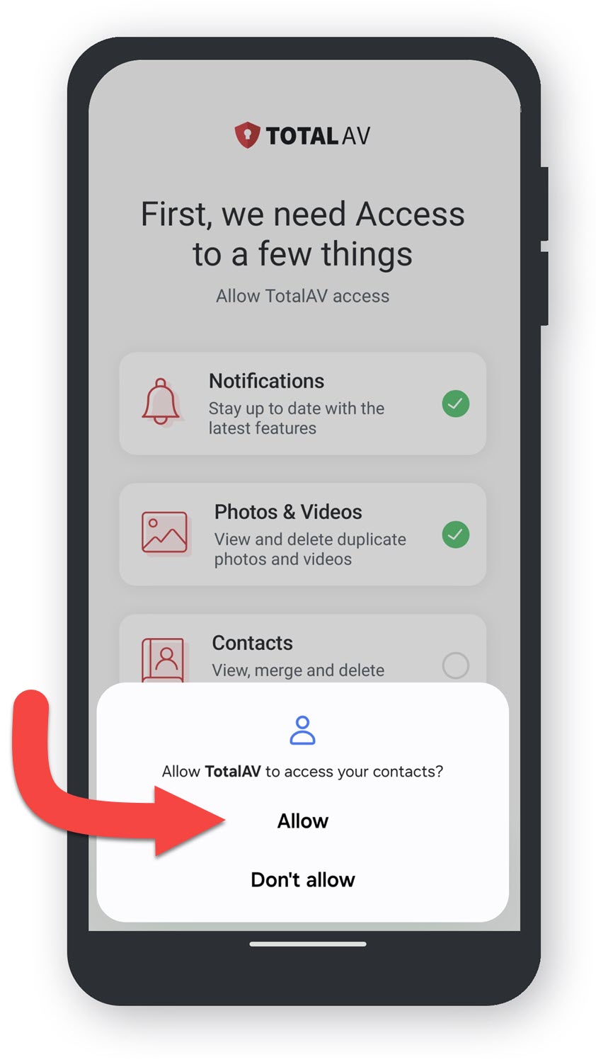 • Kliknij Zezwól, aby TotalAV mógł uzyskać dostęp do Twoich kontaktów.