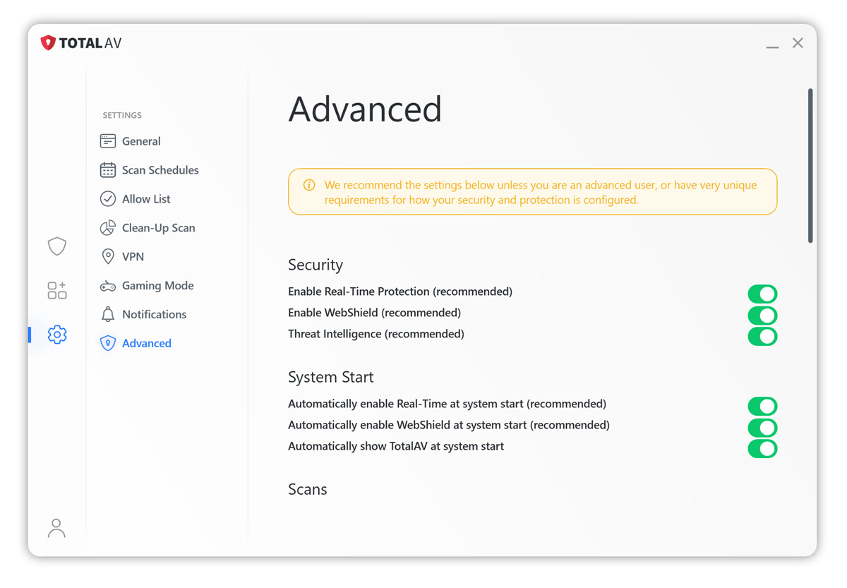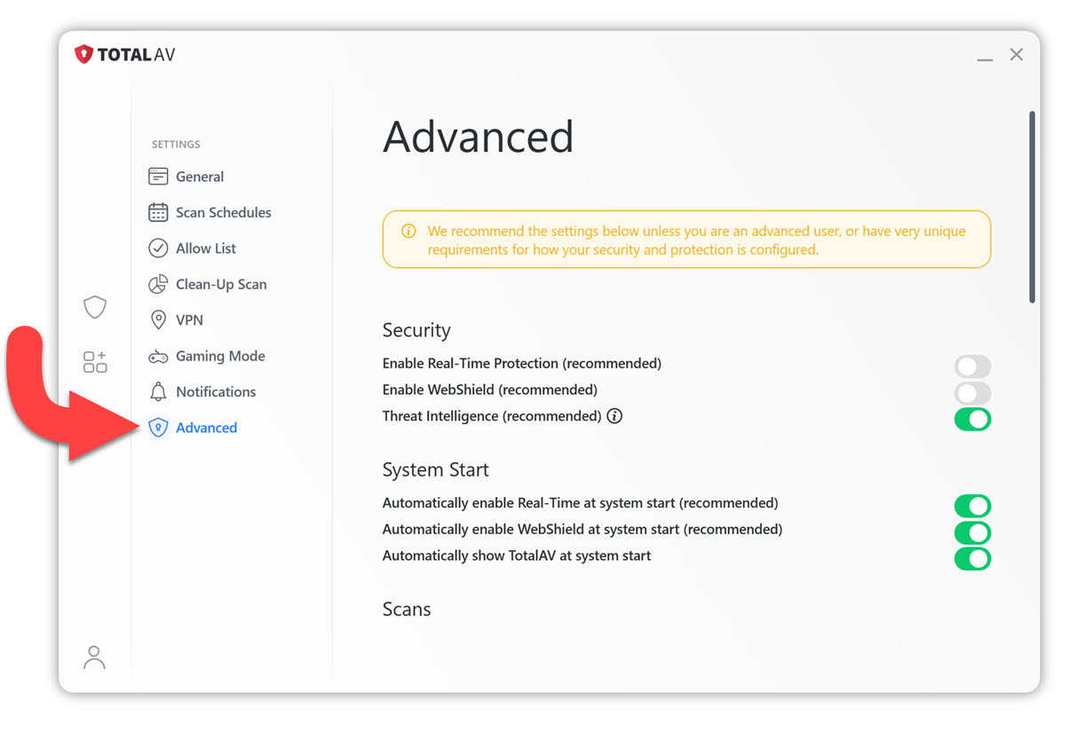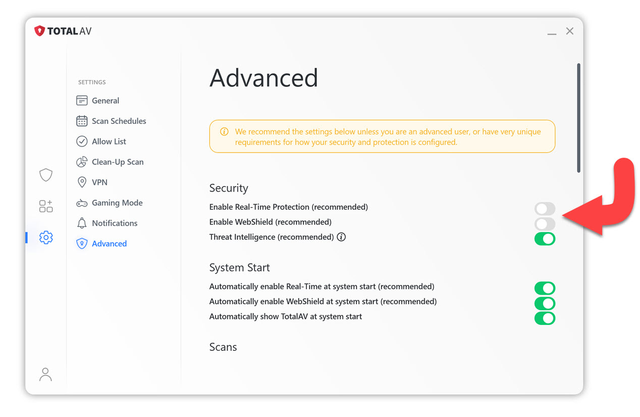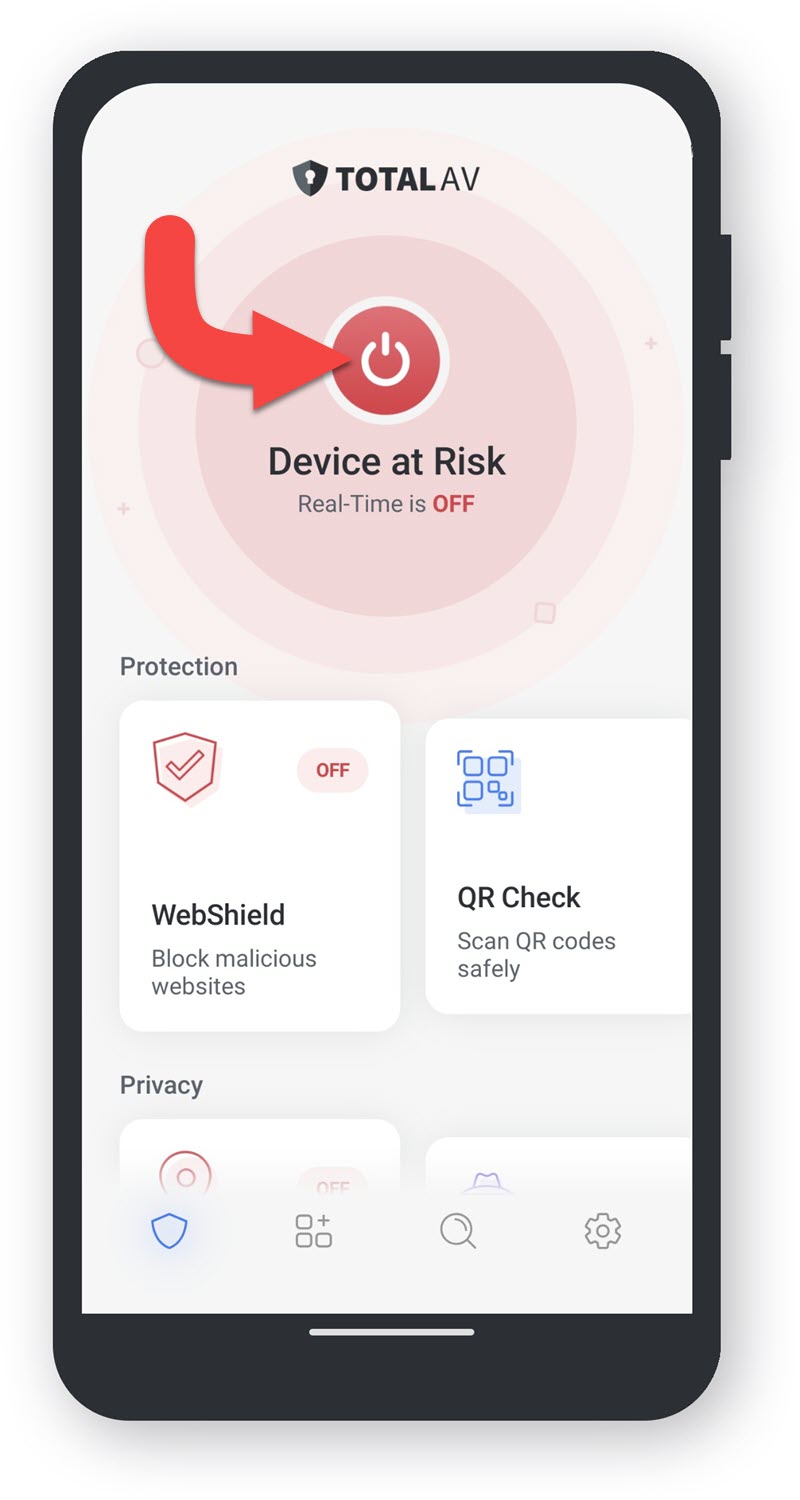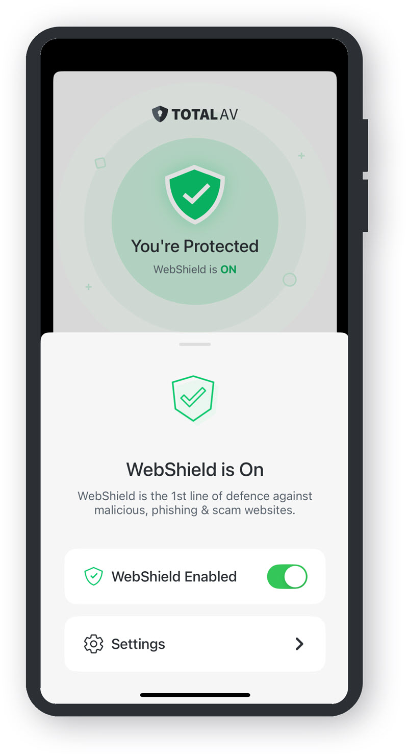 • Kliknij przełącznik, aby włączyć TotalAV Webshield.