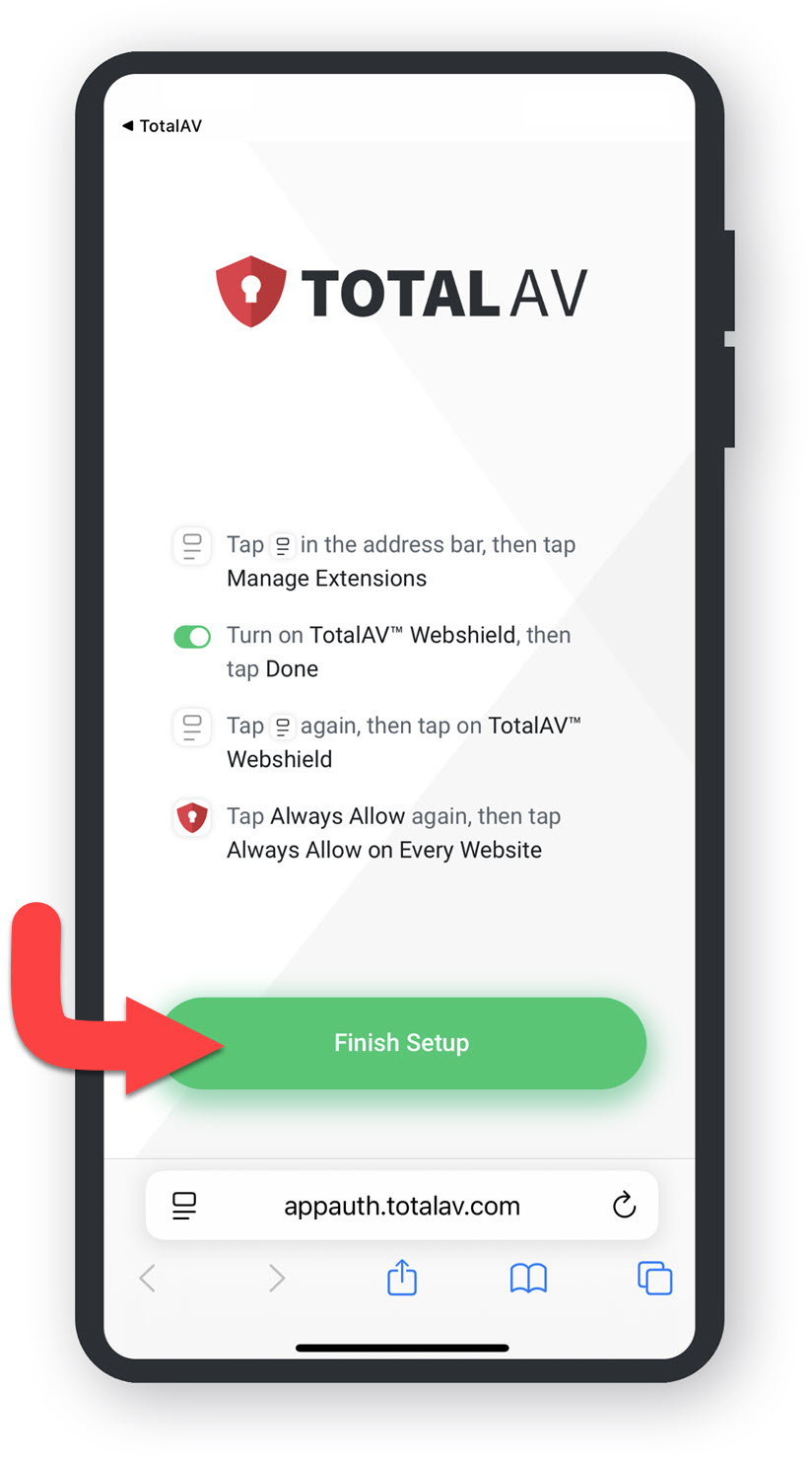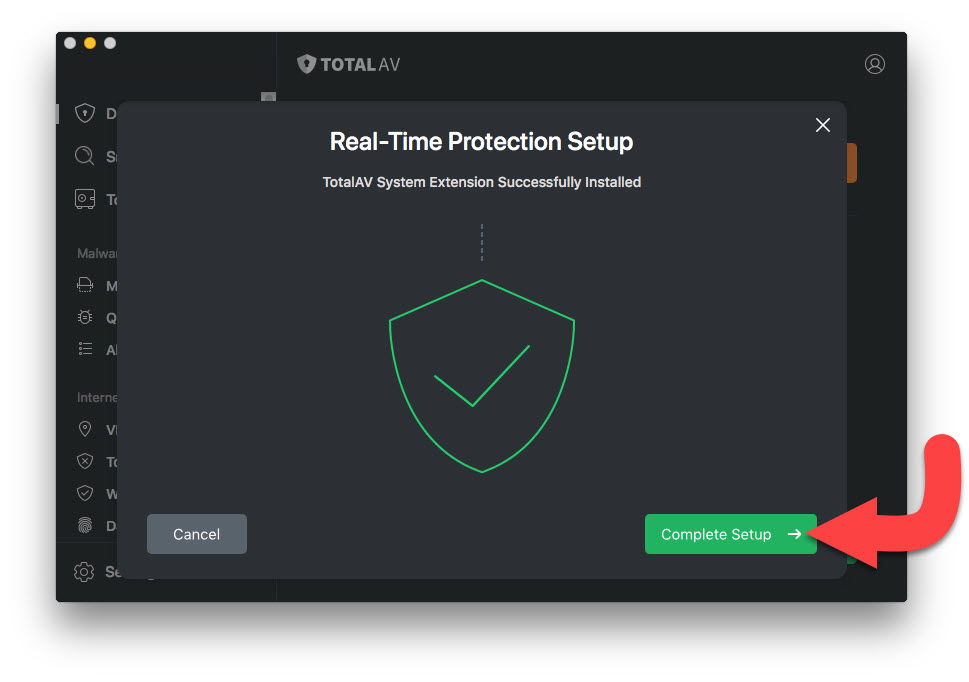 • Przejdź do aplikacji TotalAV i kliknij Zakończ konfigurację.