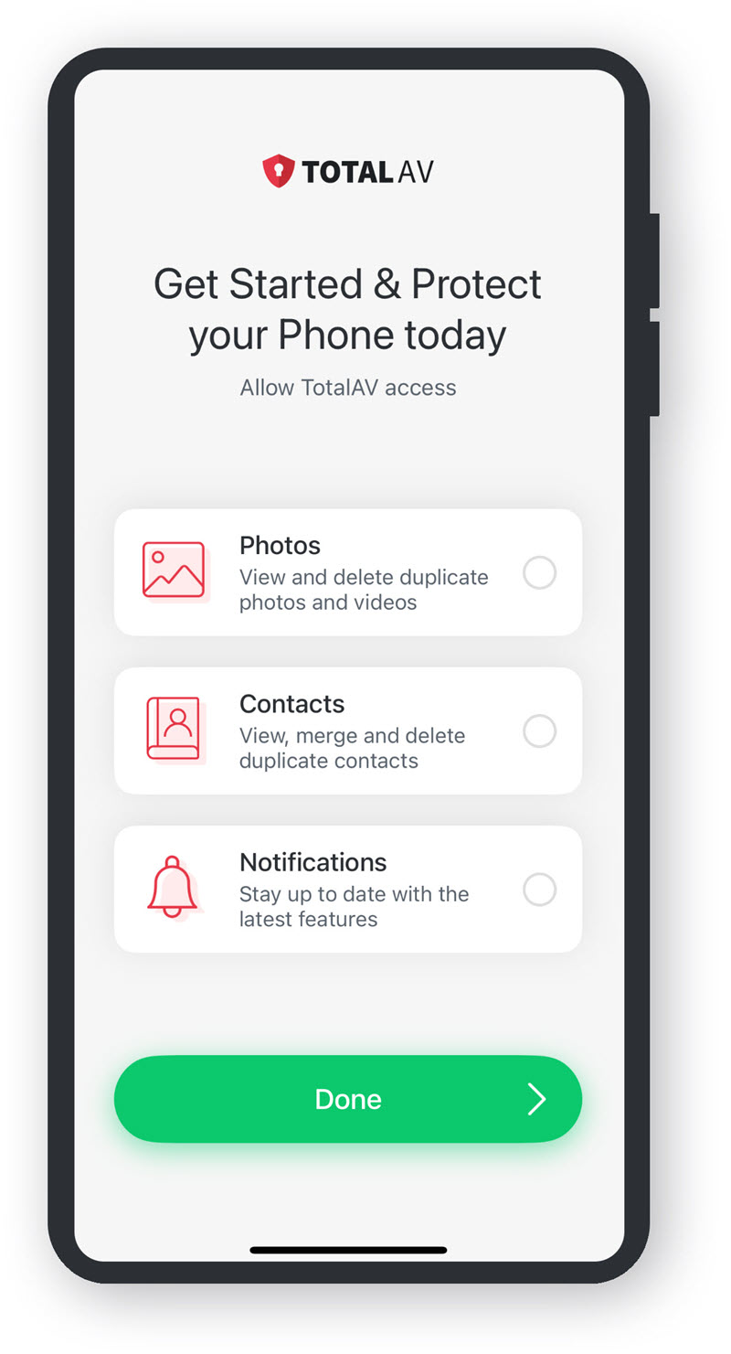 Uwaga: TotalAV wymaga uprawnień na Twoim iPhonie lub iPadzie, aby funkcje takie jak Narzędzia czyszczące i Powiadomienia działały prawidłowo.