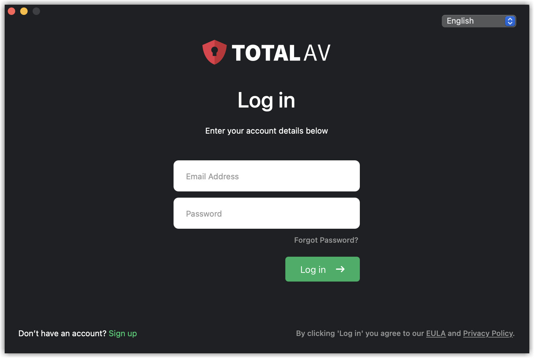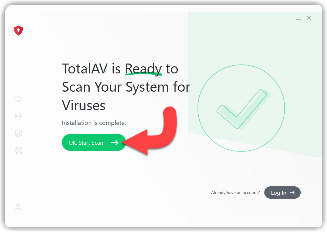 Jeśli chcesz się zalogować przed rozpoczęciem skanowania, kliknij Zaloguj się, aby aktywować aplikację TotalAV.