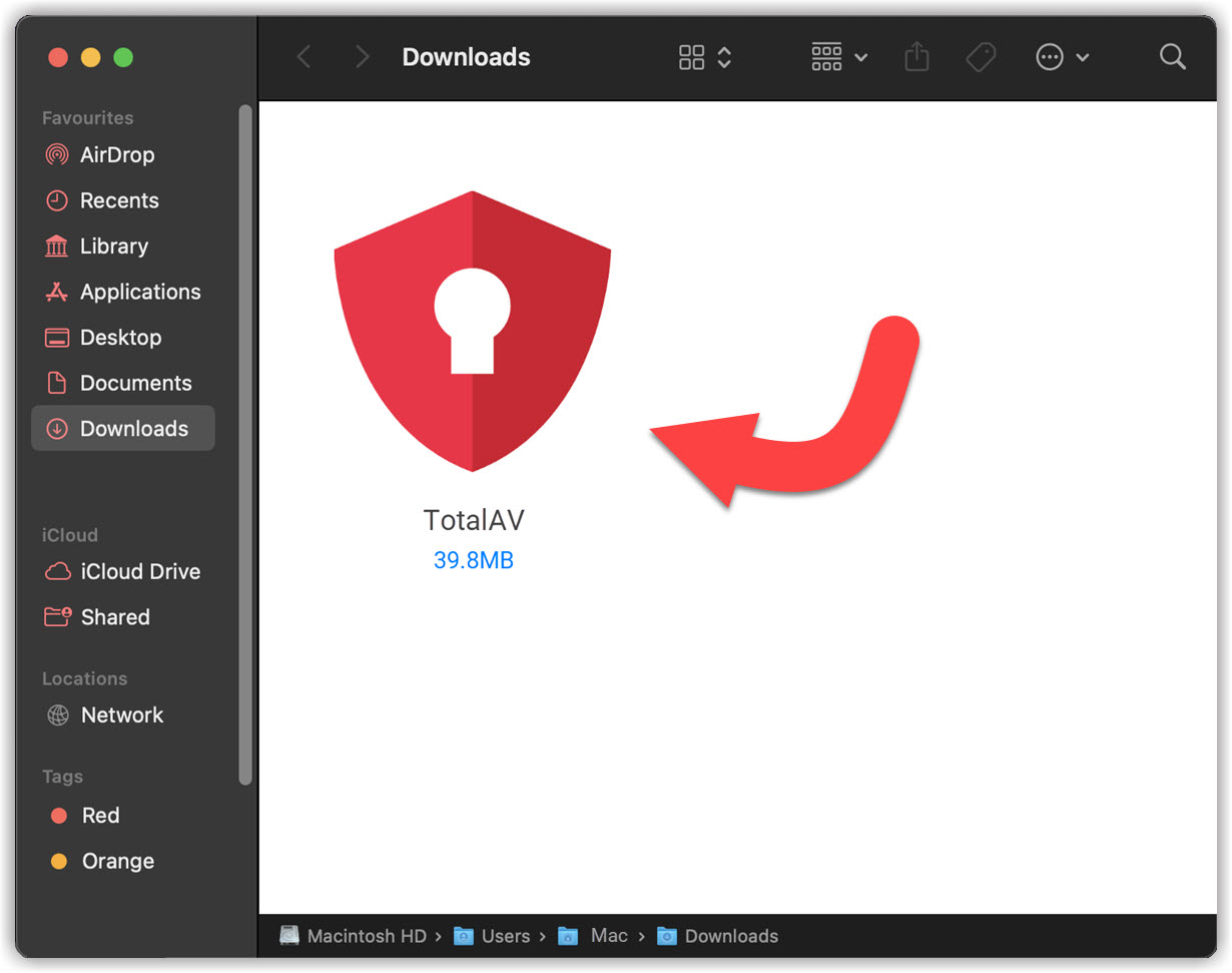 Otwórz pobrany plik w obszarze pobierania przeglądarki lub przechodząc do folderu pobranych plików w Finderze i kliknij dwukrotnie plik totalcleaner.dmg.