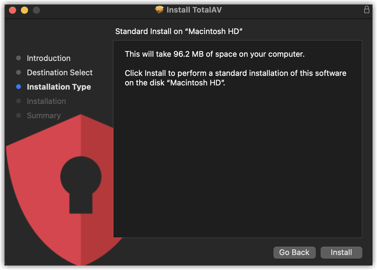 Kliknij Zainstaluj, aby rozpocząć instalację TotalAV. Jeśli używasz więcej niż jednego dysku, wybierz Docelową lokalizację, w której chcesz zainstalować TotalAV, a następnie kliknij Zainstaluj.