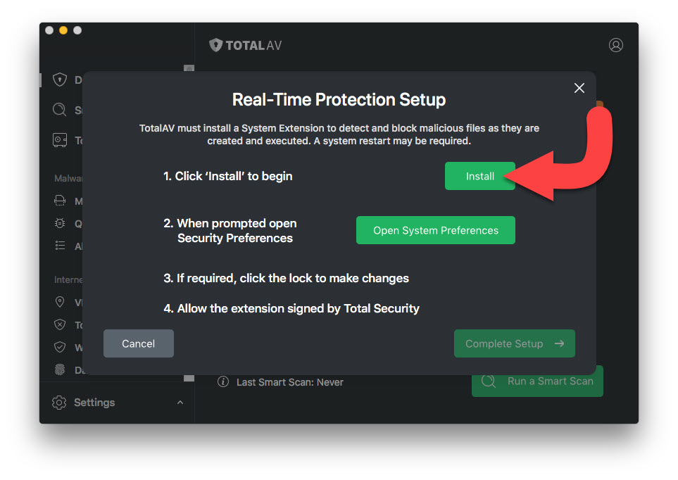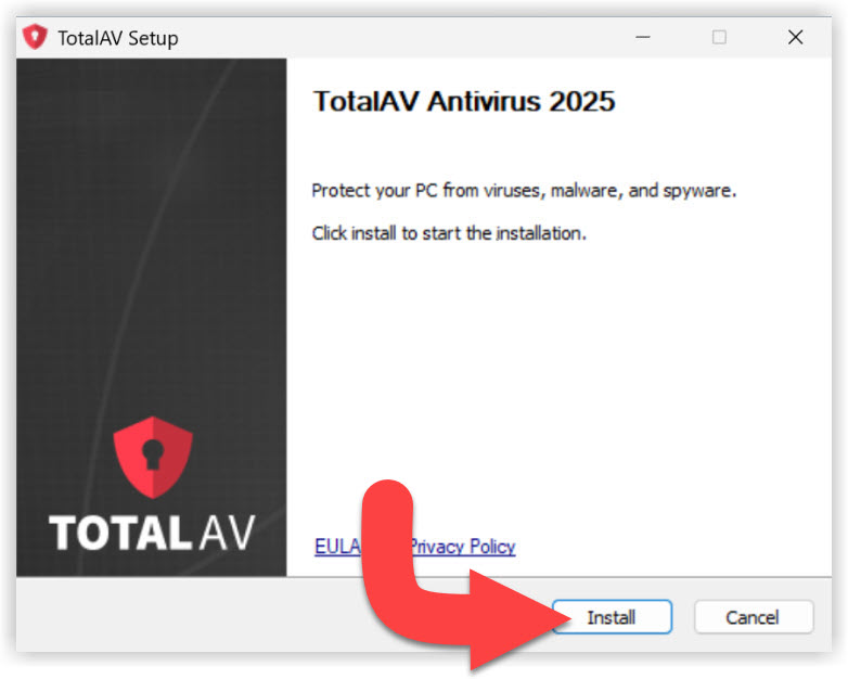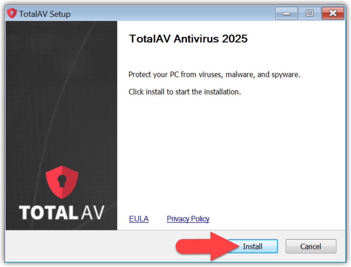 • Kliknij Zainstaluj w nowo otwartym oknie instalacyjnym TotalAV.