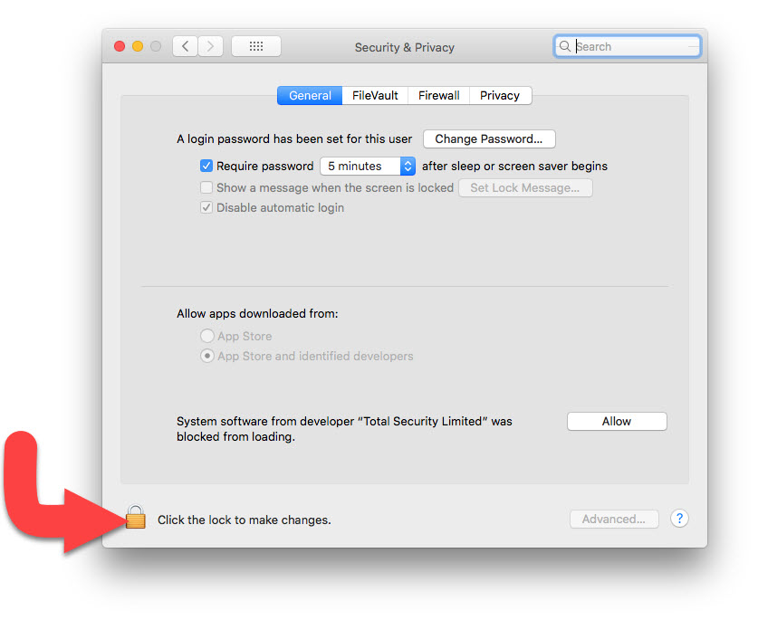 • Kliknij zielony przycisk z etykietą Otwórz Preferencje systemowe. W razie potrzeby kliknij ikonę kłódki, aby wprowadzić zmiany.