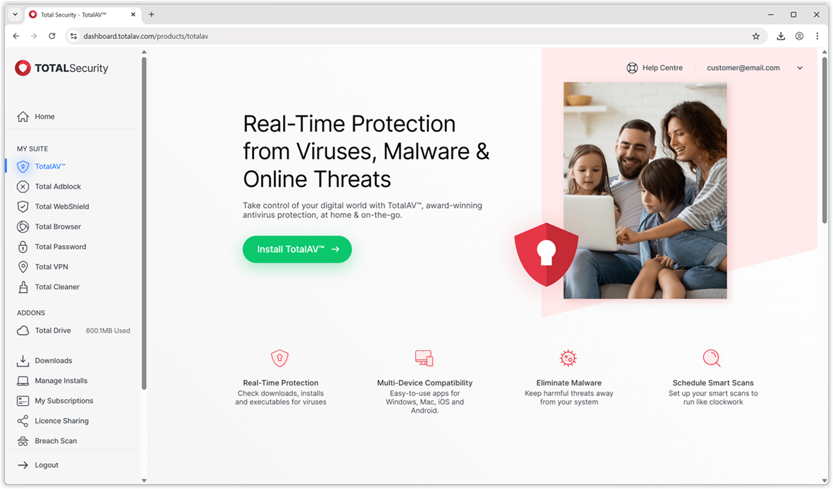 Aby pobrać TotalAV, musisz przejść do Portal internetowy i zainstalować go, klikając przycisk Zainstaluj TotalAV.