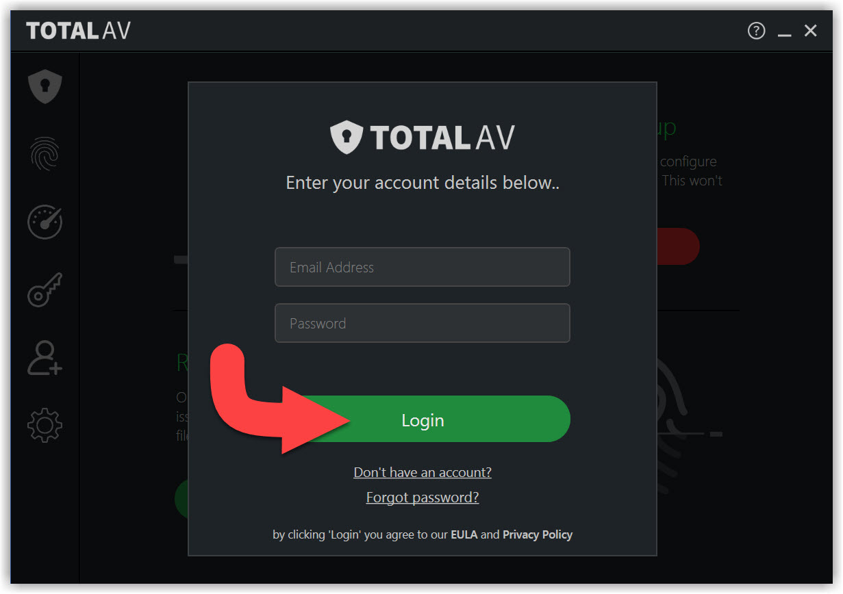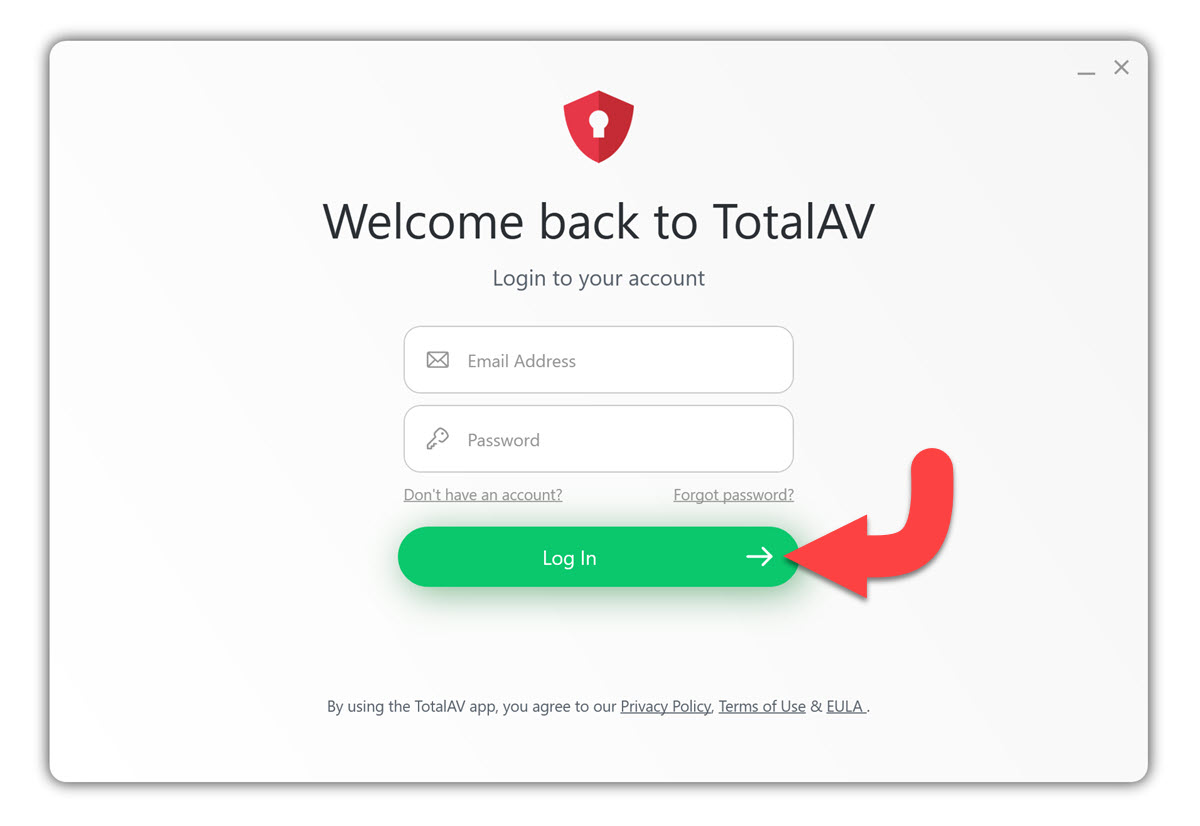 Wprowadź dane logowania TotalAV i kliknij Zaloguj.
